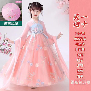 子供の漢服女の子夏半袖少女唐装古代スタイルスーパー妖精桜プリンセス中国風ドレス夏