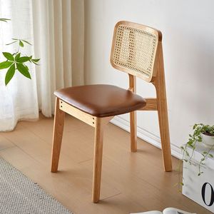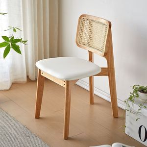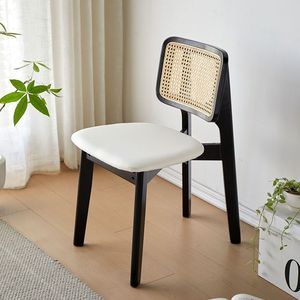 中古籐ダイニングチェア家庭用ダイニングチェア無垢材背もたれ椅子デザイナーハイエンドブラックわびさびスタイル籐椅子