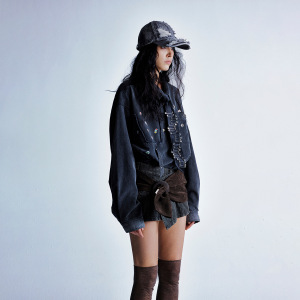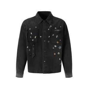 嘉衣库潮牌2025秋季新款美式复古个性贴纸设计感水洗牛仔夹克外套