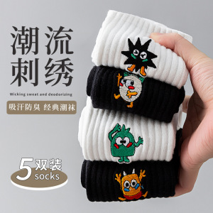 袜子男款春夏季中筒袜2025纯棉防臭抗菌吸汗青少年运动袜男士长袜