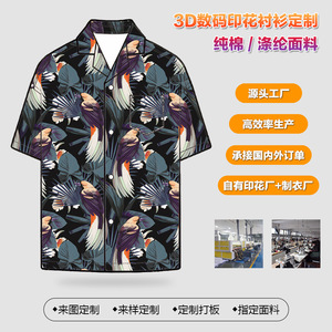 外贸跨境3D印花新夏威夷亚马逊独立站爆款翻领短袖衬衫来图定制