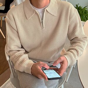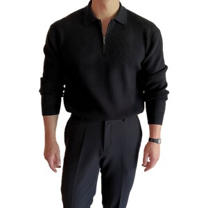 工厂直销新款POLO领半拉链毛衣男秋冬款日系高级感翻领针织衫休闲