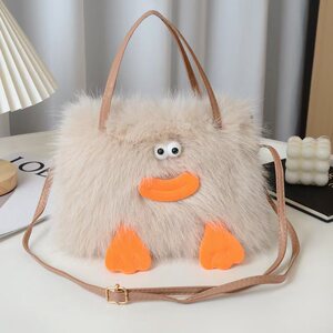 跨境新款毛绒包包可爱手拎个性网红香肠嘴少女搞怪斜挎包单肩手提