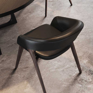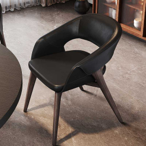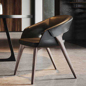 设计师意式极简轻奢高端白蜡木实木复古真皮家用餐椅扶手接待书椅