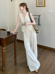 米白色 马甲+阔腿裤(优质版)