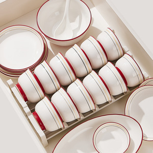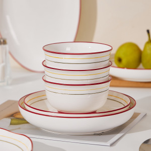 釉下彩陶瓷饭碗新款家用碗碟套装法式轻奢复古碗筷碗盘餐具套装