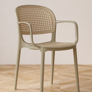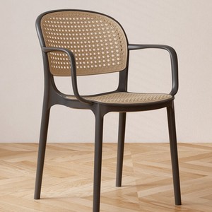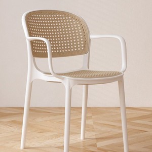 藤编北欧家用塑料椅子可叠放餐椅户外休闲靠背椅小户型扶手书桌椅