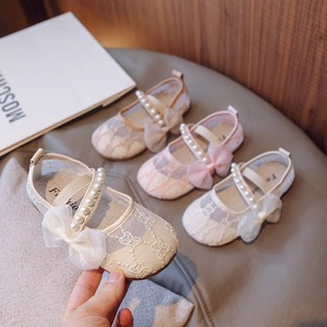 女の子用漢服靴、春夏中空ビーニーシューズ、子供用古代スタイルの柔らかい底の刺繍入り中国風古代衣装プリンセスシューズサンダル