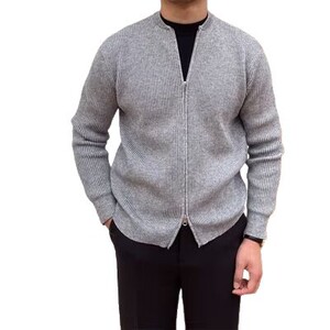 工厂直销高质量12针春秋季新款外套男士韩版圆领毛衣修身针织开衫