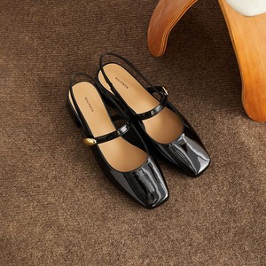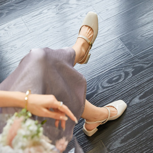 牛革バージョン〜女性用本革フレンチスクエアトゥバックサンダル2025夏の新しい多用途厚いヒールの女性用メリージェーンシューズ。