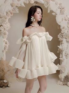 ベトナムのニッチブランド25年新作ジェントルスタイルワンショルダーサスペンダーチューブトップフリルドレス