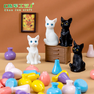 マイクロ風景シミュレーションカラーフラワーボトル黒と白の子猫人形クリエイティブホームデコレーションアクセサリーデスクトップ装飾品