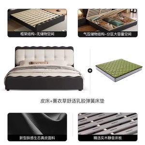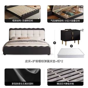 フレンチレトロブラックパフベッドクラウドマスターベッドルームレザーベッドモダンシンプルリップルベッドネットレッドソフトパッケージダブルベッド