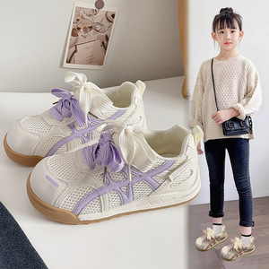 子供用軽量2025新しい女の子の白い靴、夏用、通気性が良く、履きやすい、柔らかいソール、多用途のカジュアルスポーツフォレストシューズ