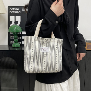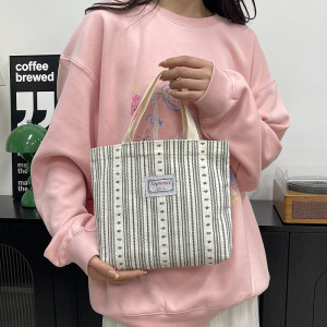 时尚条纹印花手拎包包女轻便学生上课简约收纳包上班族通勤便当包