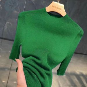 春秋薄款高领针织打底半袖针织衫新款秋季五分修身洋气中袖上衣