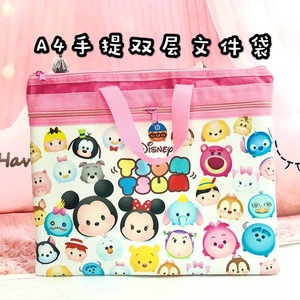 かわいい学生漫画ポータブルドキュメントバッグオックスフォード布 A4 二層ドキュメントバッグジッパーバッグ情報バッグ家庭教師バッグ