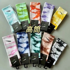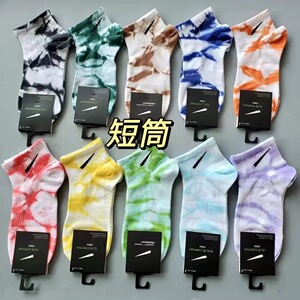 タイダイフック ウォンテス メンズ レディース オールシーズン ミッドハイ ショート スポーツソックス アウター ランニング フック カラー コットン ソックス