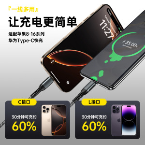PD 高速充電 1 対 2 データケーブル 100W ツーインワン高速充電ケーブル Huawei Apple 15type-c 充電ケーブルに適しています