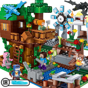 世界拼装益智中国积木儿童玩具机关山洞村庄男女孩子小颗粒礼物