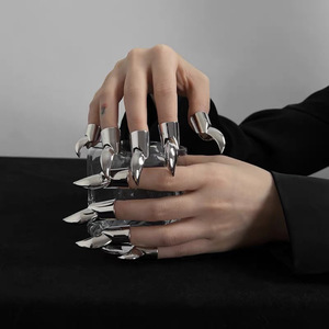 跨境专供金属狼爪指尖戒指赛博指甲套ins穿戴甲护甲套小众饰品