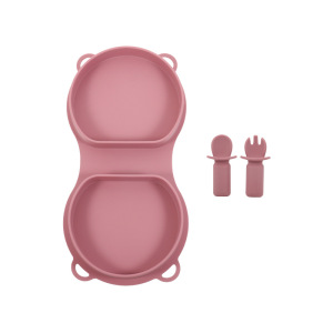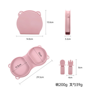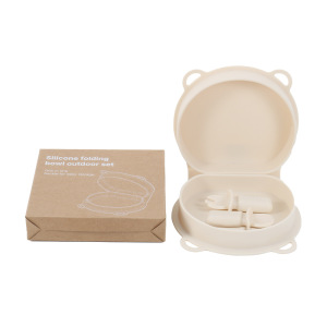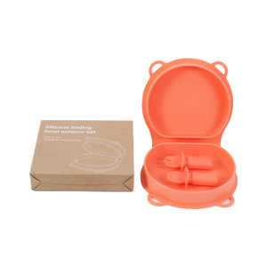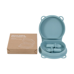 新款婴儿硅胶可折叠盘子碗儿童餐盘带叉勺户外旅游儿童硅胶饭盒