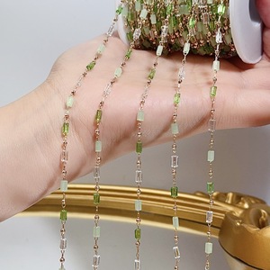 青柠夏至 diy白绿长方水晶链条纯铜高保色古风手作流苏链服装辅料