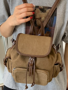 2025 夏の新ニッチシンプルなキャンバスバックパックレトロ大容量ショルダーバッグカレッジスタイルのハンドヘルドバックパック
