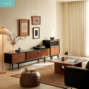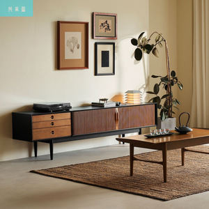 中古电视柜黑色复古风中国风储物柜小户型北欧简约电视机柜中古风