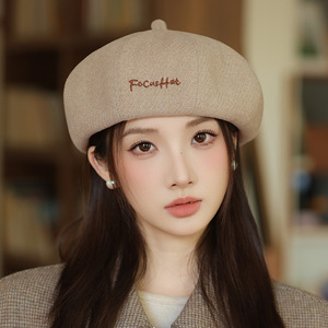 春秋新款刺绣贝雷帽韩系百搭帽子女款显脸小画家帽户外休闲八角帽