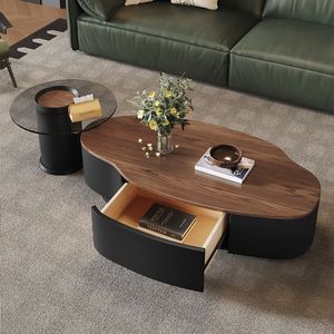 法式中古风胡桃木色芒果茶几客厅椭圆形茶桌小户型家用极简复古风