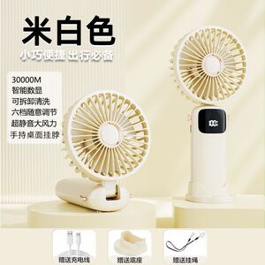 オフホワイト【5段階風力/折りたたみ/携帯電話ホルダー】デジタル表示パワー