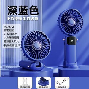 ディープシーブルー【5段階風力/折りたたみ/携帯電話ホルダー】デジタル表示パワー