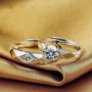 韓国風のファッショナブルなカップルリング、プラチナメッキの男性と女性の結婚式のライトラグジュアリースタイルのジルコンリング、バレンタインデーのギフト