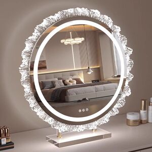 太阳花化妆镜带灯三色变光桌面化妆梳妆台镜子卧室梳妆镜亚克力