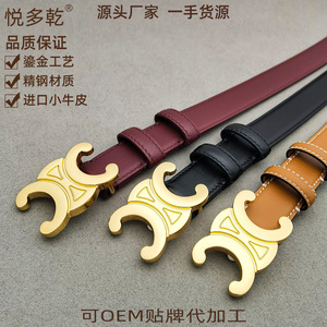 有名ブランドの代替品、ネットで話題のレディース本革ベルト、高級感のある輸入カーフレザー女性用ベルト、凱旋門ベルト
