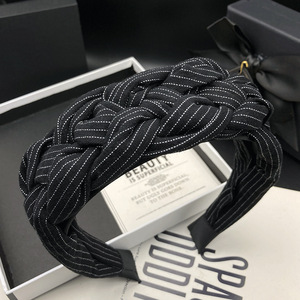韩国文艺范黑色复古条纹格子麻花辫大头围发箍女成人高颅顶头箍