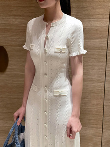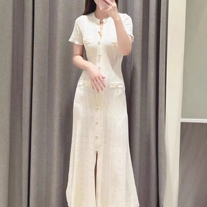 法式 纯元S家新款秋法式轻奢针织木耳边连衣裙女初恋镂空长款长裙