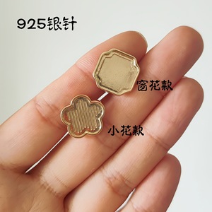 diy耳钉耳环小花窗花包布贴皮滴油五金金属配件空托925银针