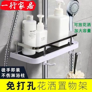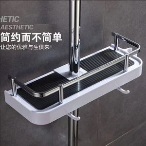 バスルームシャワーヘッド収納ラック、パンチングなし、昇降可能なシャワーロッドトレイ、フック付き多機能バスルーム収納ラック