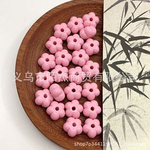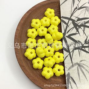 ペイントフラットカボチャフラワービーズストレートホールアクリル DIY ソリッドカラーファットフラワー 5 花びらルースビーズ携帯電話チェーンジュエリーパーツ