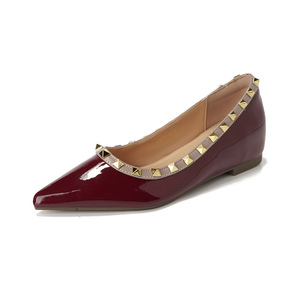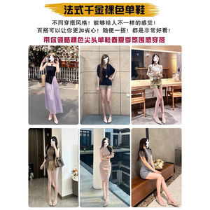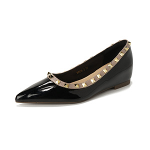 羊皮版~内增高法式裸色铆钉尖头单鞋女夏平底小香风浅口玛丽珍鞋