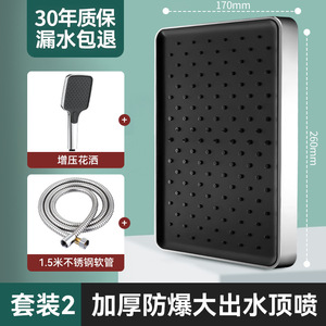 【11寸方顶喷套装2】黑色大出水顶喷+手持增压花洒+1.5米防爆管
