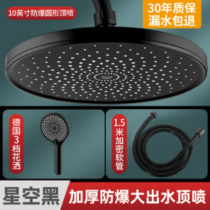【星空黑套装2】10英寸圆顶喷+3档增压花洒+1.5米防爆管