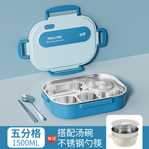 【ブルー】5仕切弁当箱+汁椀★★
