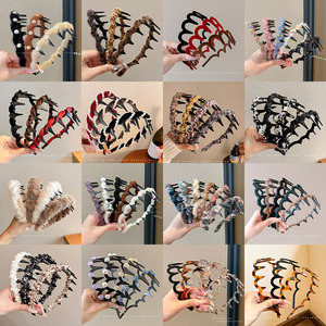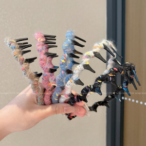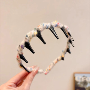 秋冬韩版波浪齿绒高颅顶发箍女气质简约毛线头饰洗脸发卡