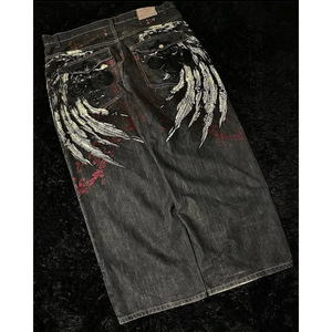 春の新作アメリカンハイストリート刺繍ストレートジーンズ、男性と女性用、ファッショナブルで多用途なスリムジーンズ、コットン