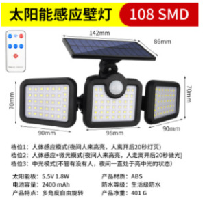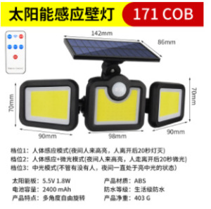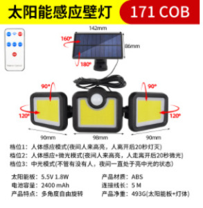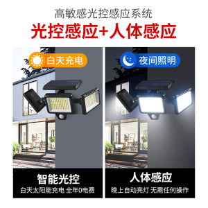 三面ソーラーウォールランプ照明屋外回転式人体誘導ランプインテリジェント誘導広角街路灯強力な光