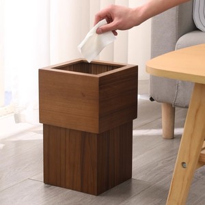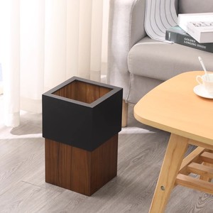 木质客厅垃圾桶胡桃木色垃圾收纳纸篓家用无盖中古风垃圾筒