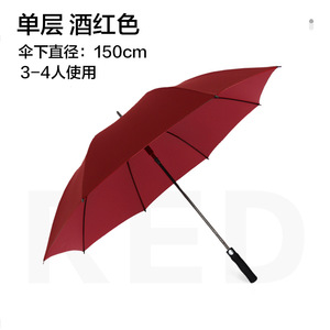 【双层】【黑胶】【弯柄】150cm-酒红色(3-4人使用)